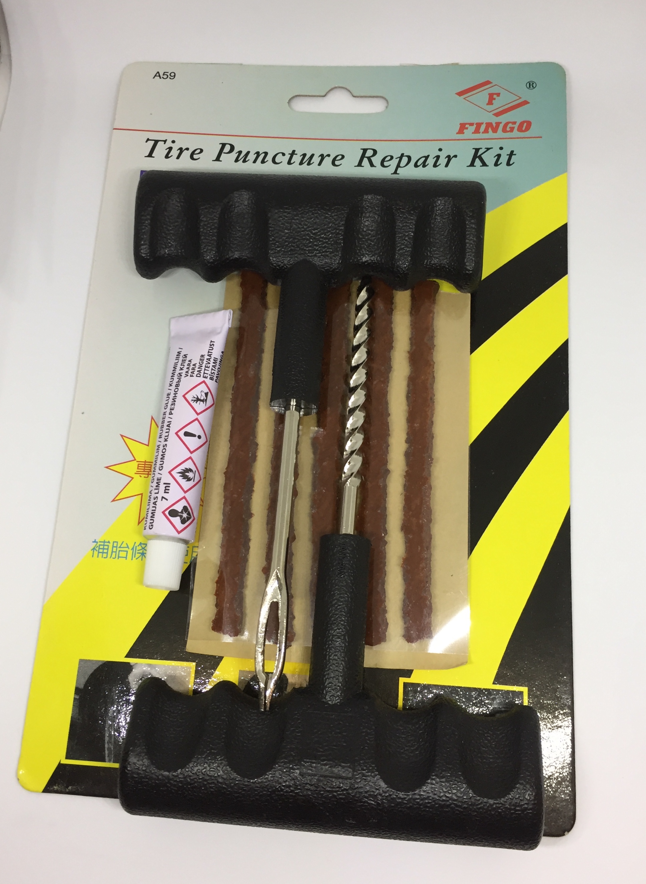 If a tire leaks air pressure on the road, and it is in a more far location, or where there is no repair shop nearby, more difficult to solve the trouble. At this time, it will be much easier to have a set of DIY Tire puncture repair kit No.A59.